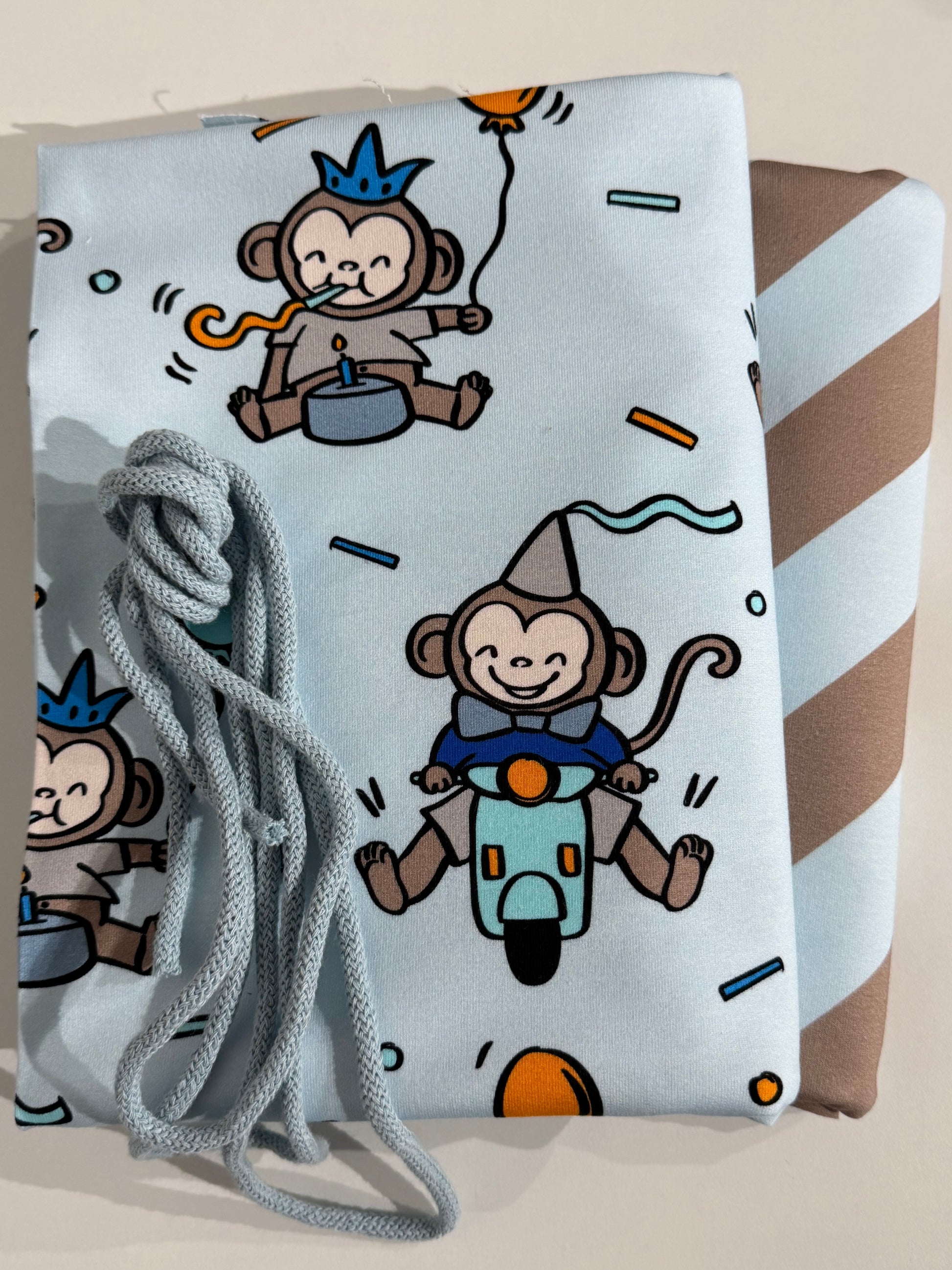 Dieses Paket B-Ware Stoffe Eigenproduktionen, die je 1m Länge messen und in voller Breite liegen plus 2m Kordel.