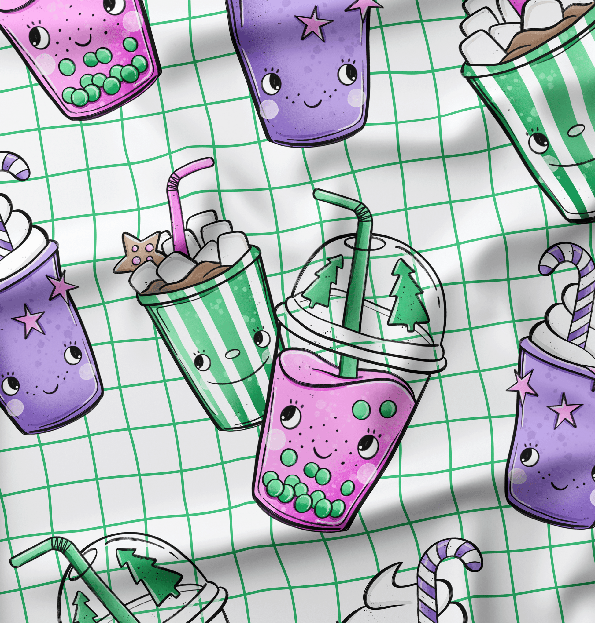 French Terry Tea Xmas Grid