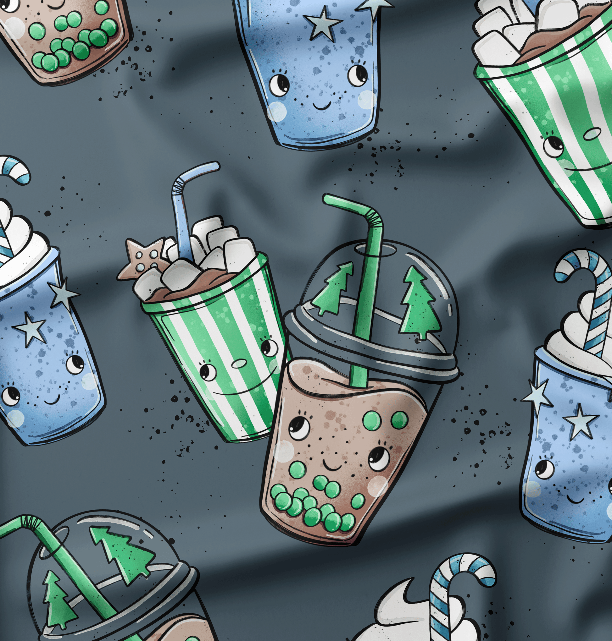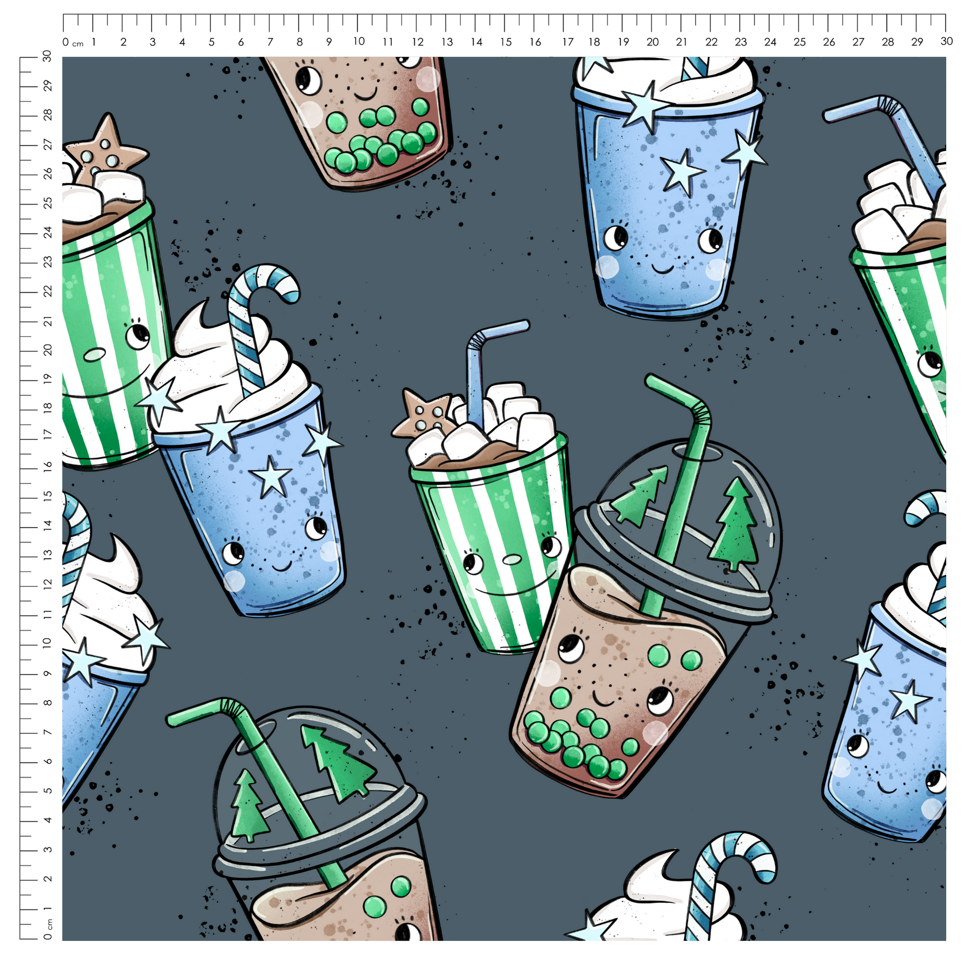 French Terry Tea Xmas Blue